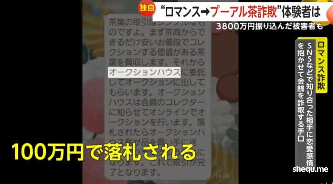 东京都的普洱茶收购商直言,在近一个月内就有10位遭遇类似骗局的男性找到他要求回收茶叶。